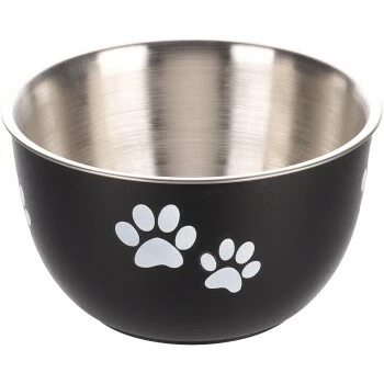 Futter- und Trinknapf mit Deckel schwarz & silber.