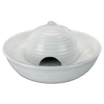 Zur Reinigung können Sie die Pumpe durch zwei Saugnäpfe einfach entfernen und die Plastikteile und den Filter säubern. Der Brunnen selbst ist aus Keramik und daher spülmaschinenfest. Bei harten Wasserwerten ist es empfehlenswert, kein Leitungssondern Mineralwasser ohne Kohlensäure zu verwenden.